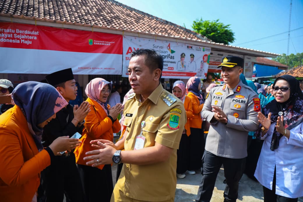 Acara tersebut dihadiri langsung oleh Kapolres Karawang AKBP Fiki Novian Ardiansyah, S.H., S.I.K., M.K.P., M.Si., serta jajaran Forum Koordinasi Pimpinan Daerah (Forkopimda). Turut hadir Bupati Karawang H. Aep Syaepulloh, S.E., Dandim 0604/Karawang Letkol Inf. Naryanto, S.Kom., M.Han., Plt. Camat Klari Dudi Alexandri, S.ST.P., Kapolsek Kotabaru Iptu Suherlan, S.H., para kepala dinas, kepala UPTD, kepala desa se-Kecamatan Kotabaru, serta masyarakat sekitar.
