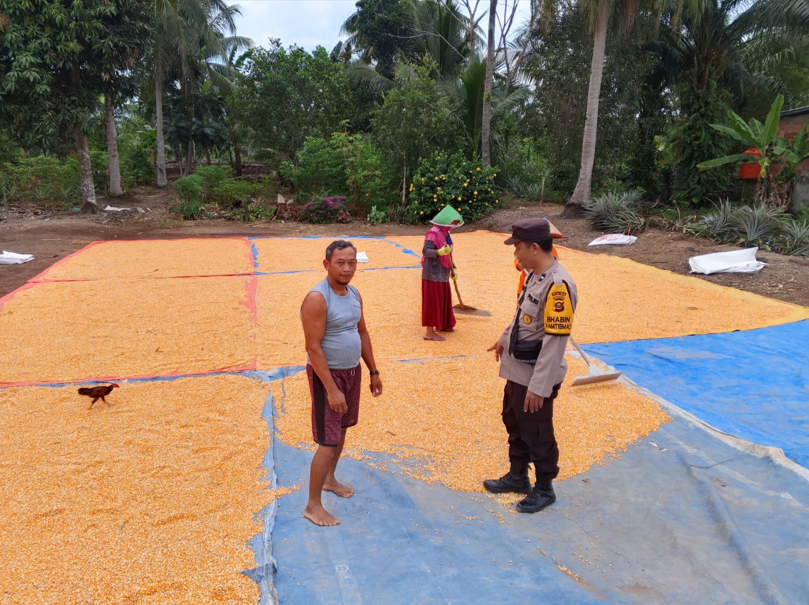 Pada pukul 10.30 WIB, Aipda J. Silitonga turun langsung ke lokasi penjemuran jagung milik petani setempat, Kegiatan berfokus pada dua hal utama pengecekan terhadap proses penjemuran hasil panen untuk menjaga kualitas komoditas, dan sosialisasi harga gabah jagung yang mengacu pada Instruksi Presiden (Inpres) Nomor 10 Tahun 2025.