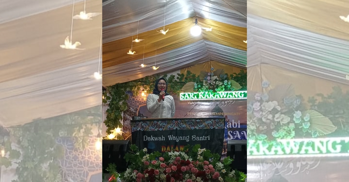 Sekretaris Kelurahan Palumbonsari, Lina, hadir dan memberi sambutan di panggung Maulid Nabi Karees RW 10.