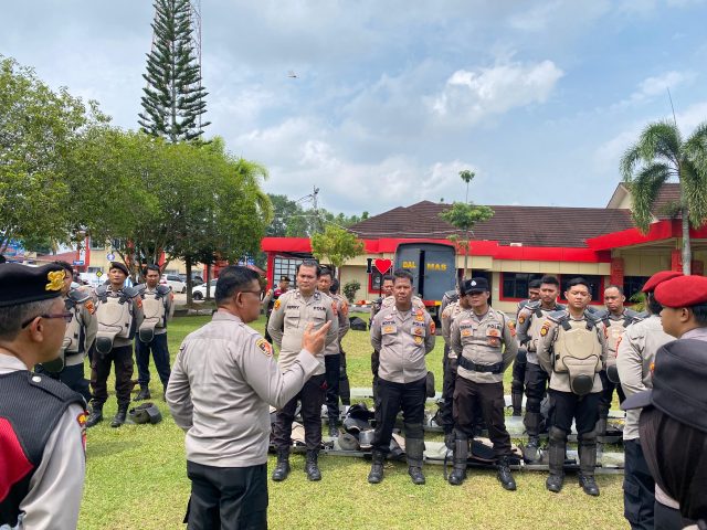 Banyuasin, Expose – Polres Banyuasin menggelar latihan pasukan Dalmas (Pengendalian Massa) pada Selasa, 16 September 2025, di Lapangan Apel Mapolres Banyuasin.