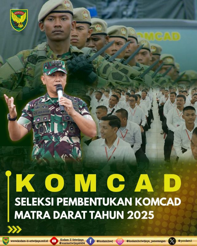 Palembang, Expose – Kodam II/Sriwijaya menyelenggarakan rangkaian kegiatan Seleksi Pembentukan Komponen Cadangan (Komcad) Matra Darat Tahun 2025 sebagai bagian dari upaya memperkuat sistem pertahanan negara yang bersifat semesta.
