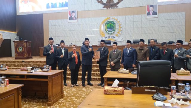 Penandatanganan bersama antara Wabup Iwan Tuaji dengan DPRD kabupaten PALI dilakukan di ruang rapat paripurna disaksikan sejumlah Kepala OPD dan Forkopimda dilingkungan Pemkab PALI.