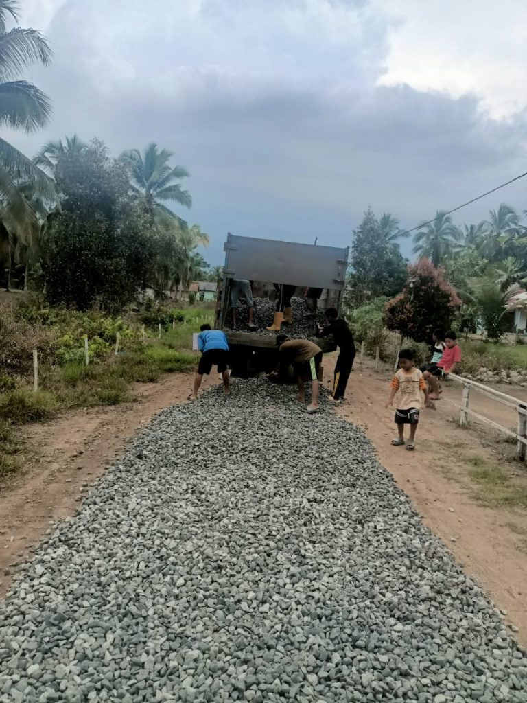 Proses pengerjaan pengoralan ini juga diketahui di aplikasikan di wilayah dusun satu (01) dengan volume sepanjang empat ratus enam puluh meter (460m) dengan lebar dua setengah meter (2,5 m) serta tebal sepuluh centi meter (10,cm), menggunakan anggaran dana desa tahun 2025 tahap ke dua sebesar Rp,130,000,000 (seratus tiga puluh juta rupiah).