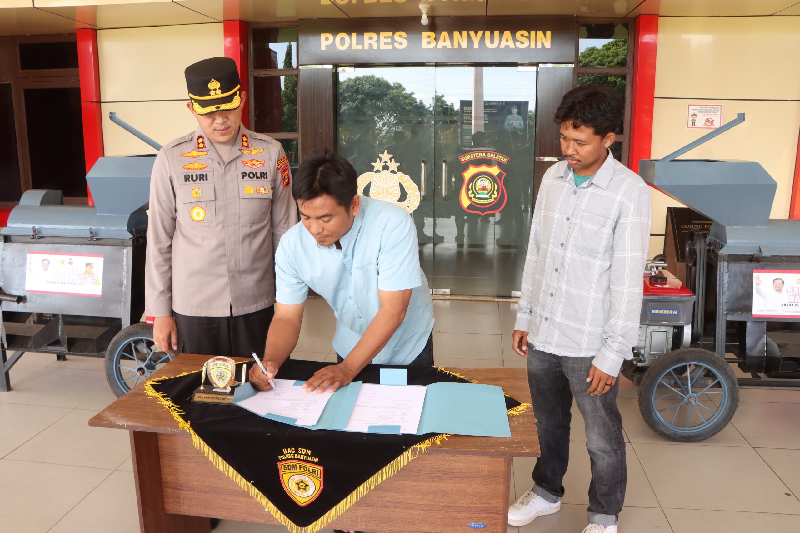 Kapolres banyuasin salurkan bantuan mesin pipil dari Kapolri