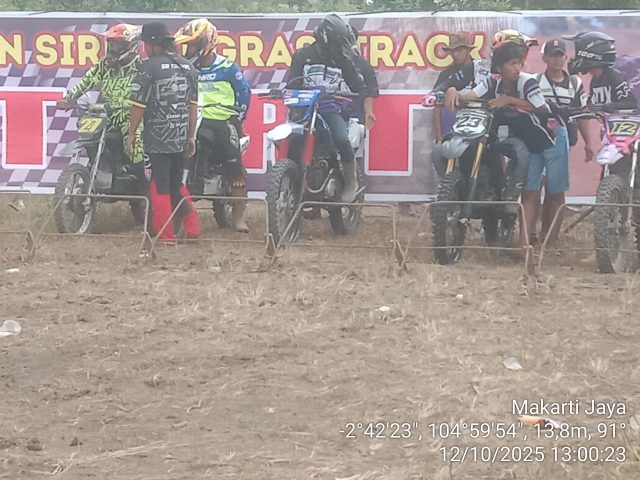 Banyuasin, Expose – Sekumpulan komunitas pecinta olahraga sejenis balap motor trail, atau yang juga dikenal dengan sebutan Grasstrak, di kecamatan air salek, menggelar ajang balap latihan bersama. giat Grasstrack di selenggarakan dalam rangka silaturahmi antar sesama komunitas motor trail wilayah perairan kabupaten banyuasin ini terpantau berlangsung selama dua hari berturut-turut yaitu pada Sabtu 11 Oktober kemarin dan berakhir hari ini bertempat di sirkuit Grasstrack Desa Srikaton, Kecamatan Air Salek, Kabupaten Banyuasin, Sumatera Selatan, Minggu 12 Oktober 2025.