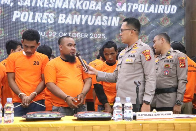 Banyuasin, Expose – Polres Banyuasin berhasil mengungkap dan menangkap tiga tersangka dalam kasus tindak pidana pembunuhan berencana yang terjadi di Jalan Palembang-Betung Km. 40, Desa Tanjung Agung, pada Selasa (21/10/2025) sore. Ketiga pelaku diamankan hanya dalam hitungan jam setelah kejadian.