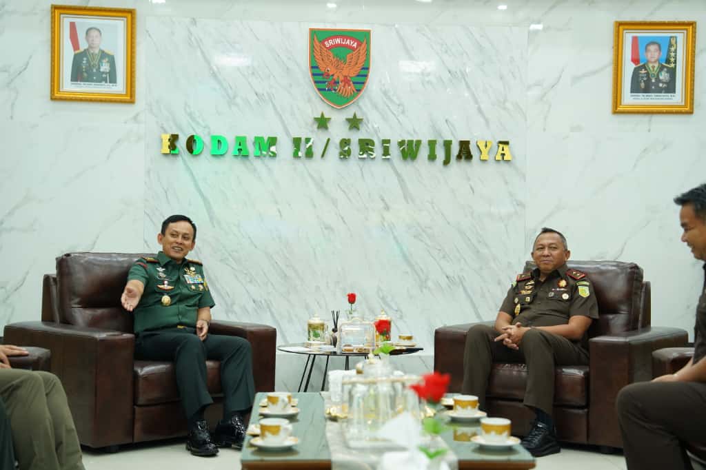 Palembang, Expose – Panglima Komando Daerah Militer II/Sriwijaya, Mayjen TNI Ujang Darwis, M.D.A., menerima kunjungan audiensi strategis dari Kepala Kejaksaan Tinggi (Kajati) Sumatera Selatan, Dr. Ketut Sumedana, S.H., M.H. Kegiatan ini merupakan upaya nyata Kodam II/Sriwijaya untuk memperkuat koordinasi dan kerjasama yang erat antarlembaga dalam rangka mendukung dan mempercepat proses pembangunan di wilayah teritorialnya.