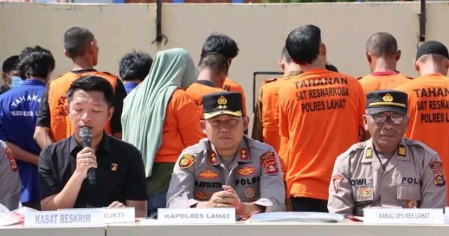 Lahat, Expose – Polres Lahat, Polda Sumatera Selatan, menggelar Press Conference hasil Operasi Sikat Musi II Tahun 2025 pada Jumat (14/11/2025) pukul 09.00 WIB. Kegiatan dipimpin langsung oleh Kapolres Lahat AKBP Novi Edyanto SIK., MIK., didampingi jajaran utama antara lain Kabag Ops Kompol Toni Arman SH., M.Si., Kasat Reskrim AKP Redho Riski Pratama STrk., SIK., M.Si., Kasat Narkoba Iptu LAE Tambunan SH., MH., Kasihumas AKP Mastoni SE, serta para Kapolsek wilayah hukum Polres Lahat.