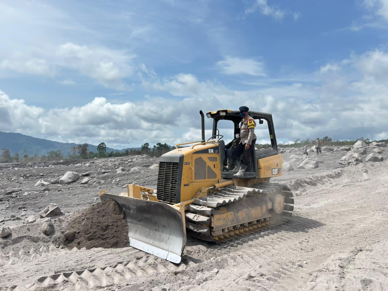 Alat berat juga dikerahkan untuk mempercepat penataan jalur aliran sungai yang tertutup material erupsi.