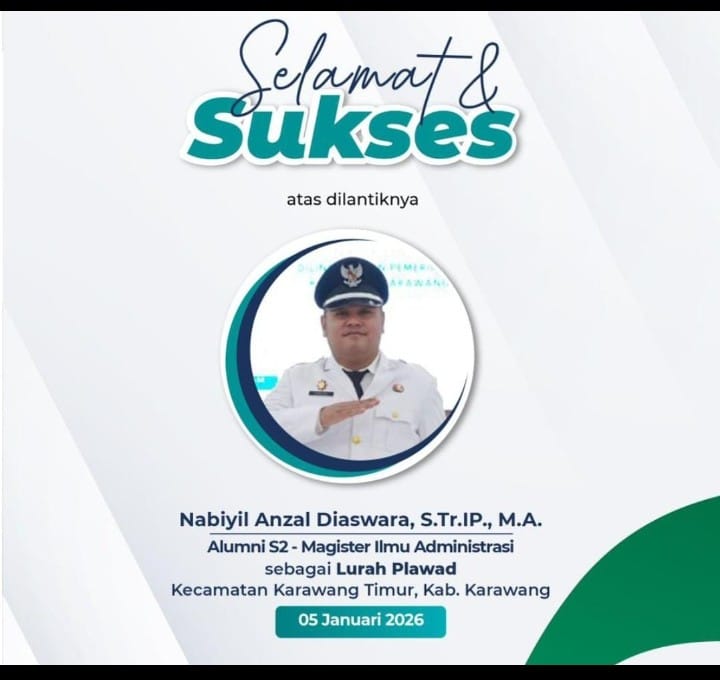 Karawang, expose.web.id – Kelurahan Plawad, Kecamatan Karawang Timur, resmi memiliki pemimpin baru. Nabiyil Anzal Diaswara, S.Tr.IP., M.A., dilantik sebagai Lurah Plawad oleh Bupati Karawang H. Aep Syaepuloh pada Senin (5/1/2026).