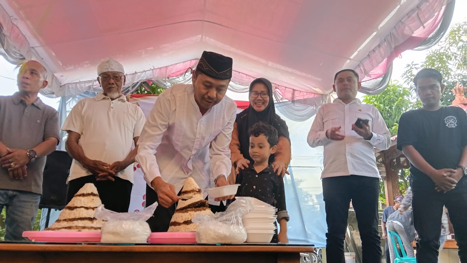 Sebagai bentuk rasa syukur, perayaan ditandai dengan pemotongan kue tradisional Awug — penganan khas yang sarat makna kebersamaan dan kerakyatan.