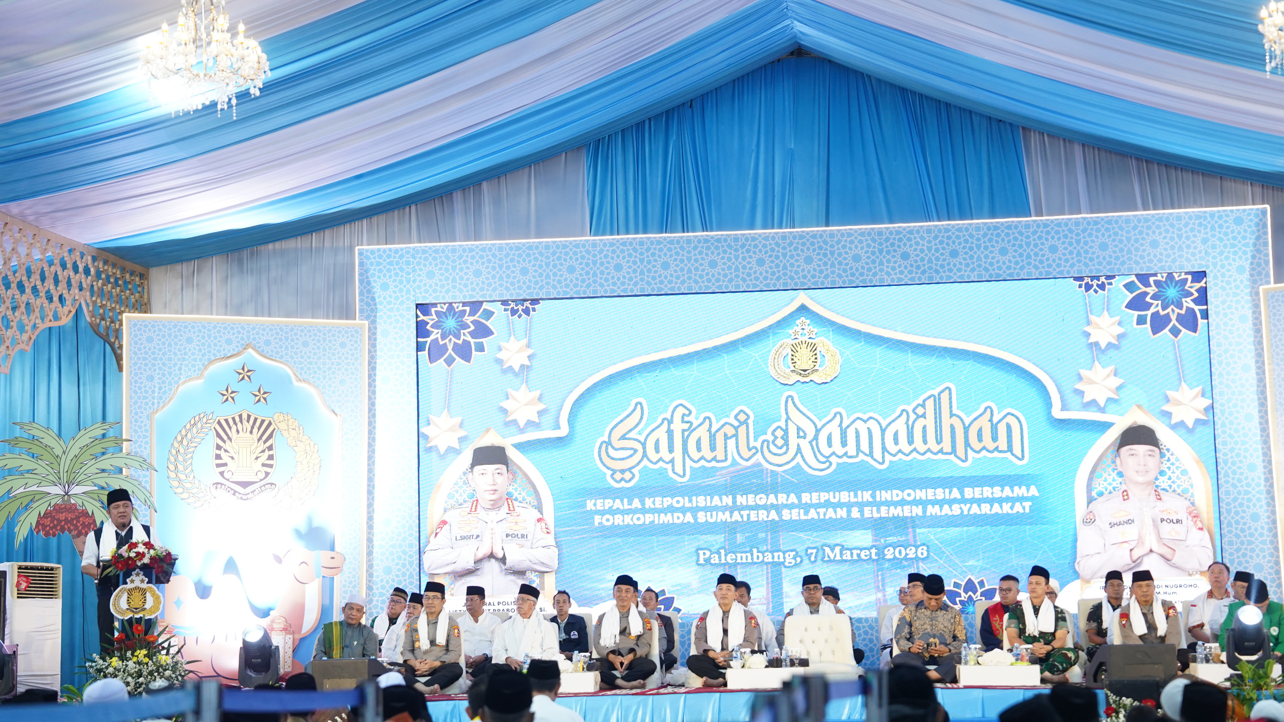 Sumsel, ExposePangdam II/Sriwijaya, Mayjen TNI Ujang Darwis, M.D.A., menghadiri kegiatan Safari Ramadhan yang diselenggarakan bersama Kapolri Jenderal Polisi Listyo Sigit Prabowo di Masjid Assa’adah Mapolda Sumsel, Palembang, Sabtu (07/03/2026). Hal ini mempertegas soliditas antara TNI dan Polri dalam menjaga stabilitas di wilayah Sumatera Selatan.