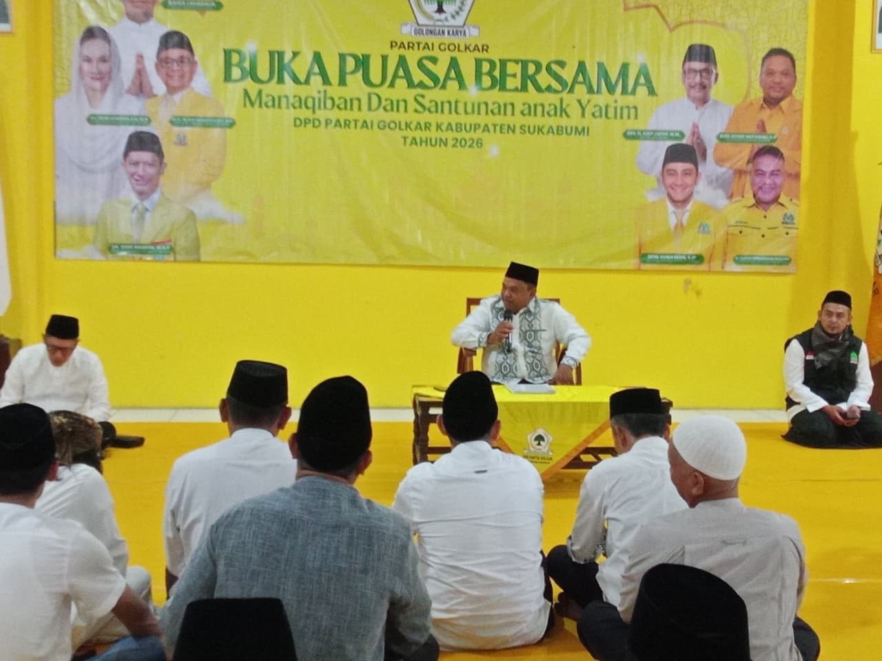 “Safari Ramadan kali ini bagian ajang Silaturahmi dan giat sosial keluarga besar DPD Partai Golkar Kahupaten Sukabumi. Kegiatan manaqiban buka bersama dan santunan anak yatim menjadi wujud nyata kepedulian terhadap masyarakat. Alhamdulilah masih diberi kesempatan dan semoga semua diberikan keistikomahan dan mubarokah bagi partai kita (Golkar),” kata H. Budi Azhar.