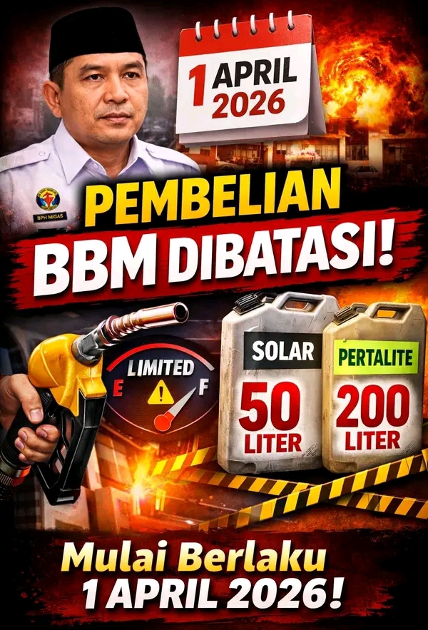 Aturan ini tertuang dalam Keputusan Kepala Badan Pengatur Hilir Minyak dan Gas Bumi (BPH Migas) Nomor 024/KOM/BPH.DBBM/2026 yang ditandatangani oleh Wahyudi Anas pada 30 Maret 2026. Kebijakan tersebut merupakan hasil Rapat Terbatas Kabinet pada 28 Maret 2026 sebagai langkah antisipasi menghadapi potensi krisis energi akibat konflik global, khususnya di kawasan Timur Tengah.