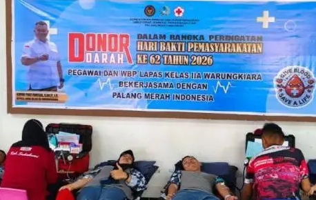 Sukabumi, Expose.web.id – Lembaga Pemasyarakatan (Lapas) Kelas IIA Warungkiara Sukabumi mengadakan kegiatan sosial berupa donor darah. Acara ini diikuti dengan antusias oleh para petugas, anggota Dharma Wanita Persatuan, hingga peserta magang yang bertugas di sana.“Kegiatan ini menjadi bukti nyata pengabdian kami kepada masyarakat, terutama dalam upaya membantu mencukupi ketersediaan stok darah,” ungkap Kurnia Panji Pamekas,Kepala Lapas Kelas IIA Warungkiara Kepada awak media,19/04/2026.