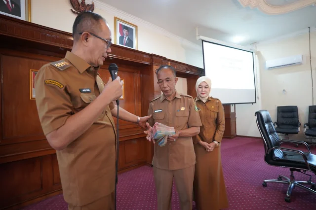 Penyerahan dana tersebut turut dihadiri Sekretaris Daerah Kota Sukabumi Andang Tjahjandi, para camat, serta jajaran perangkat daerah lainnya.