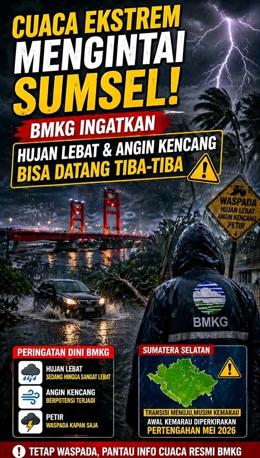Meski Sumsel diprediksi mulai memasuki musim kemarau pada pertengahan Mei 2026, bukan berarti hujan akan sepenuhnya berhenti.